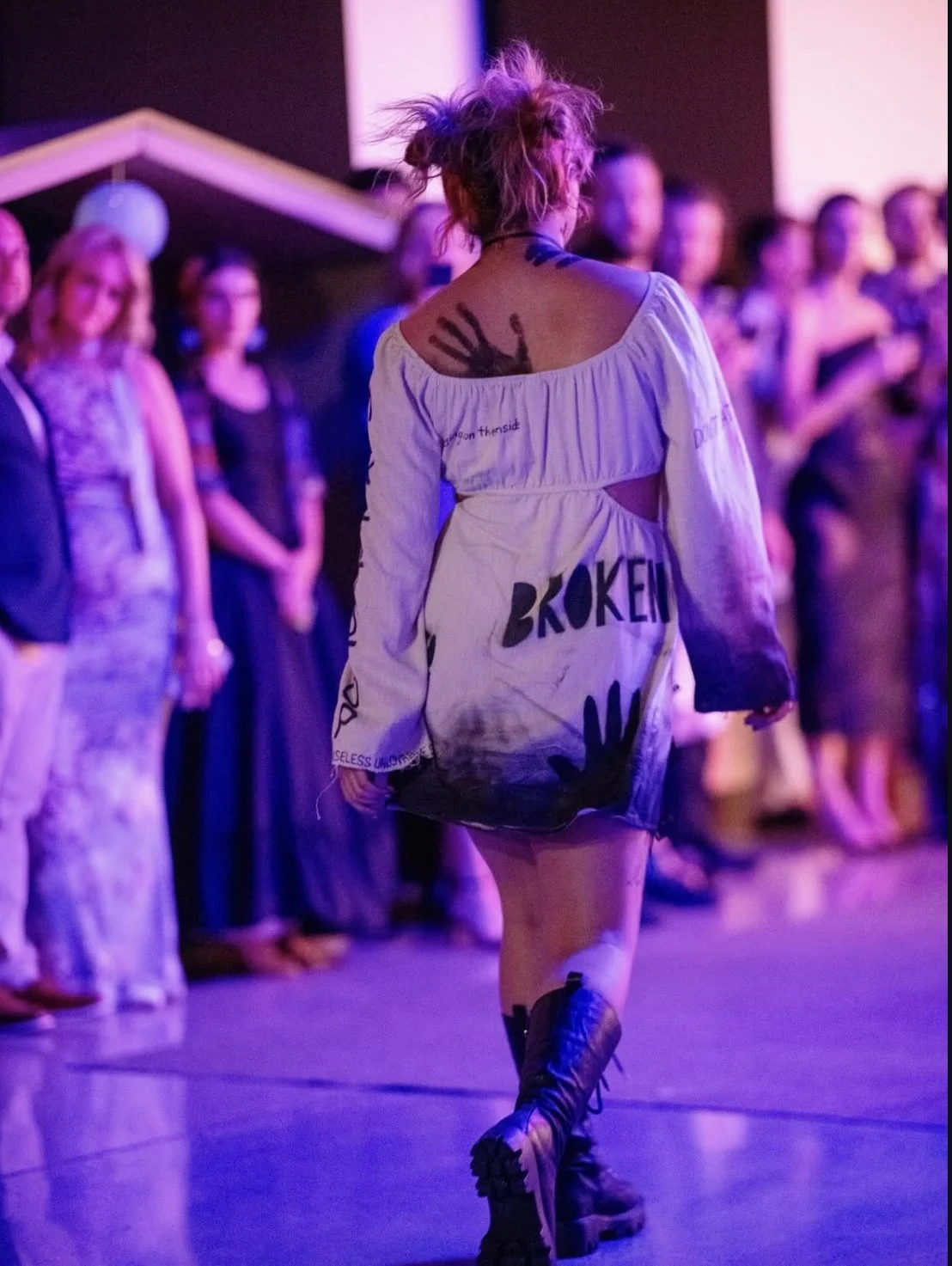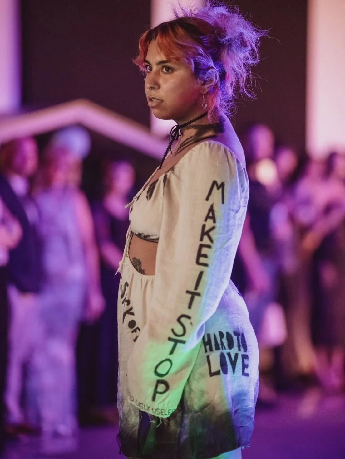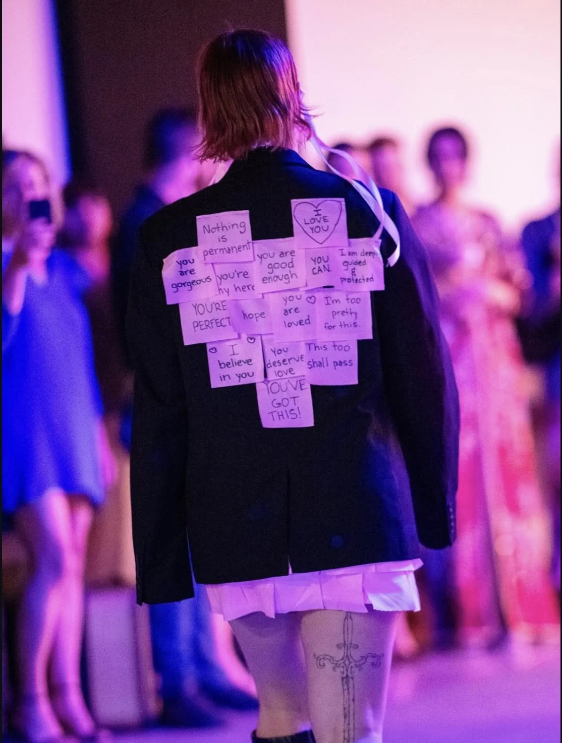 At Vessel Magazine’s second annual gala, I showed a mini collection. With the theme of the gala being fabrics and the interwovenness of community I designed a five piece mental health collection.