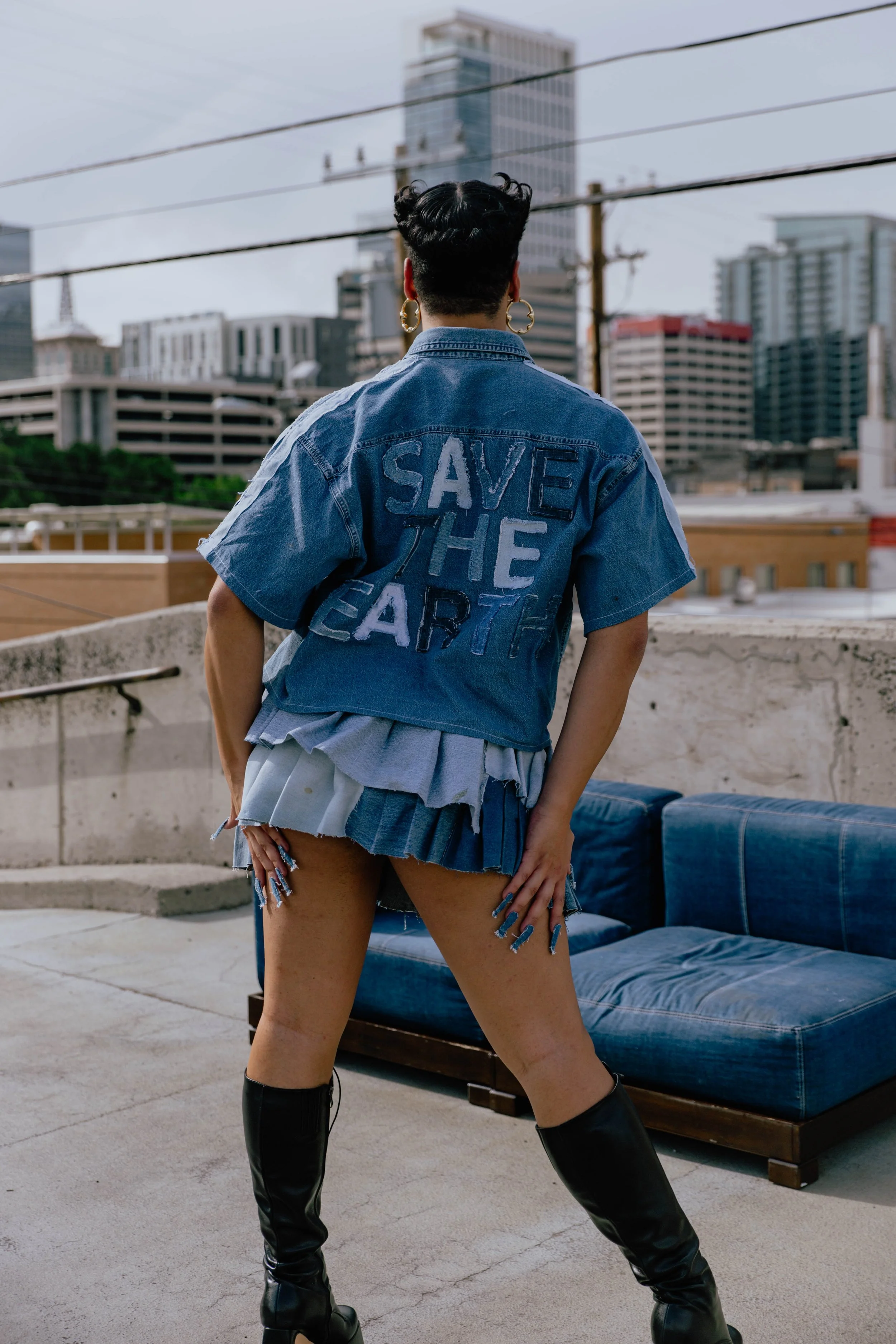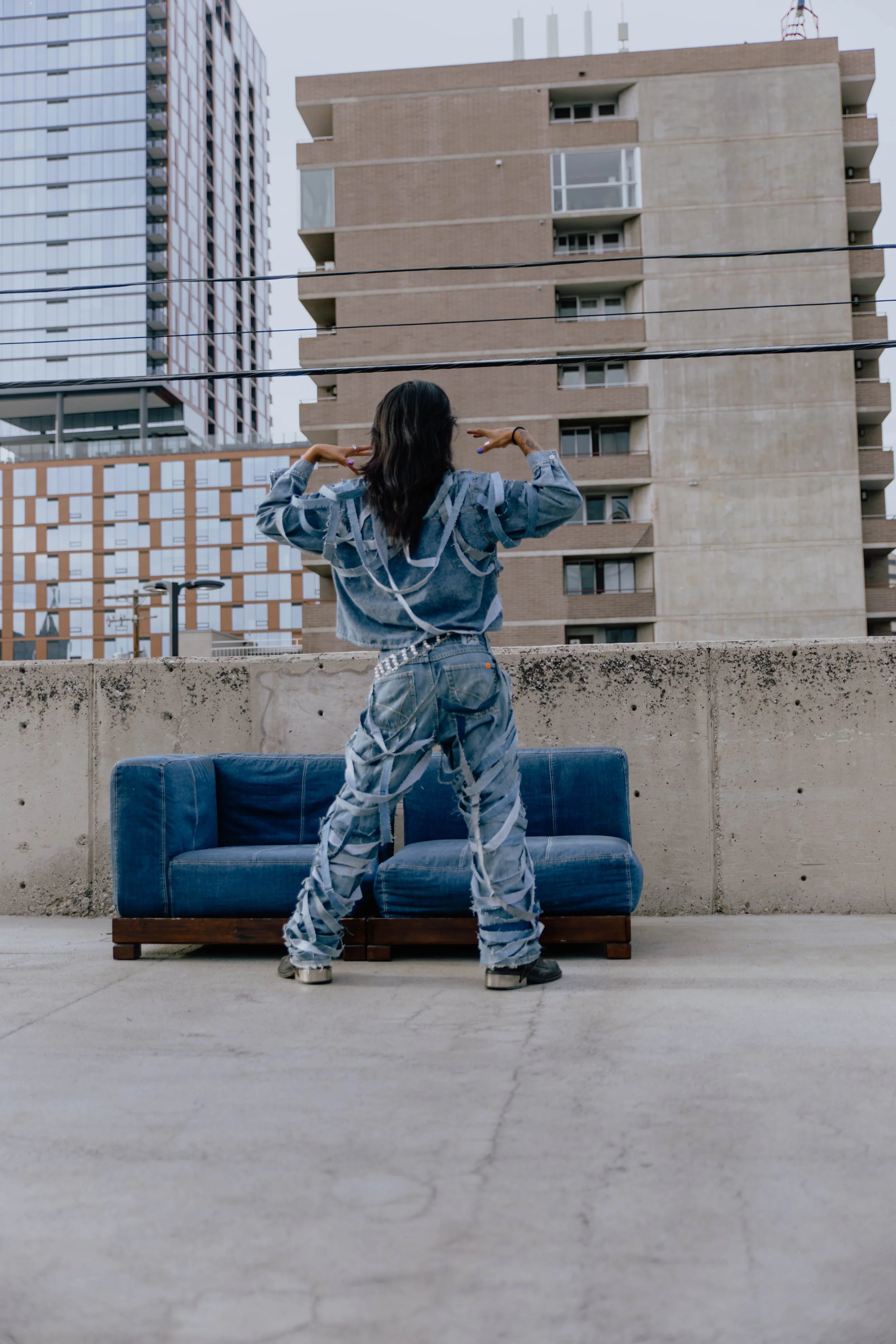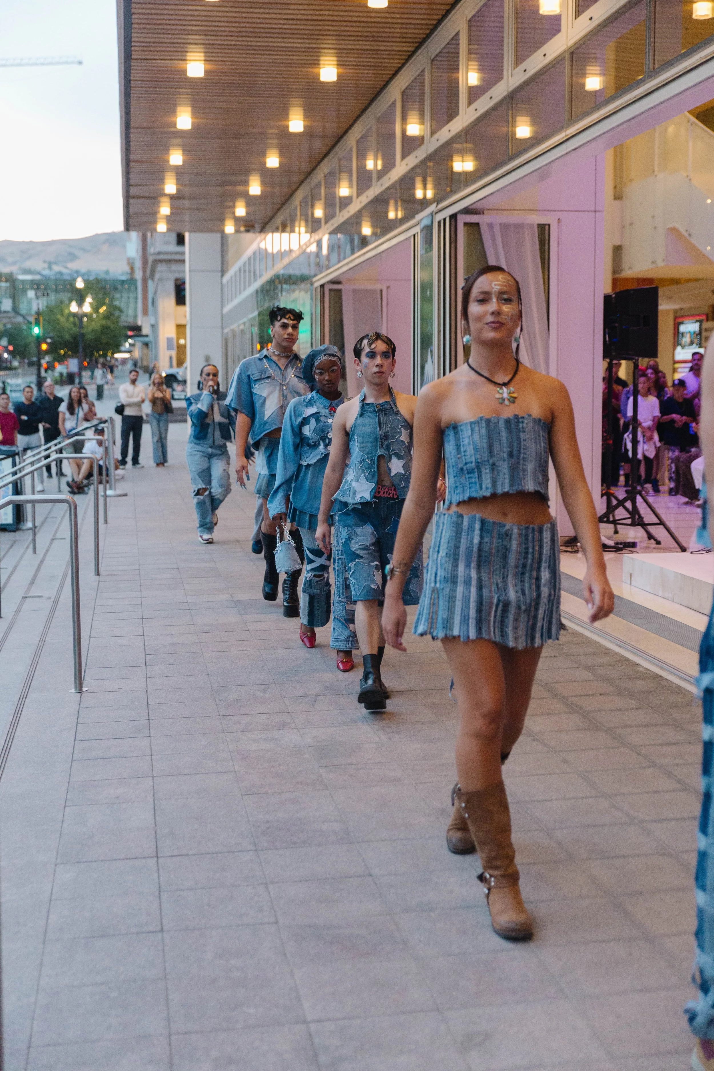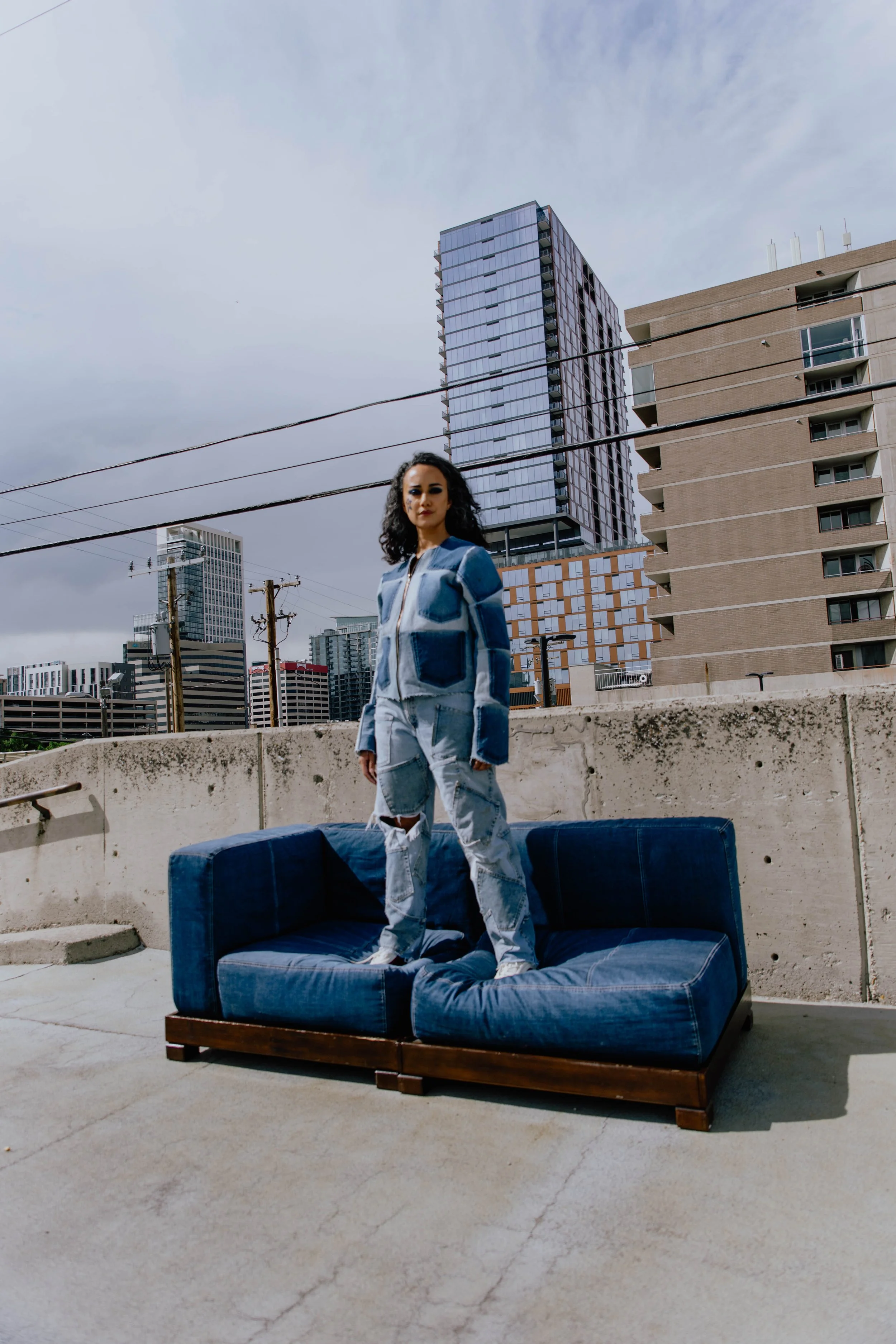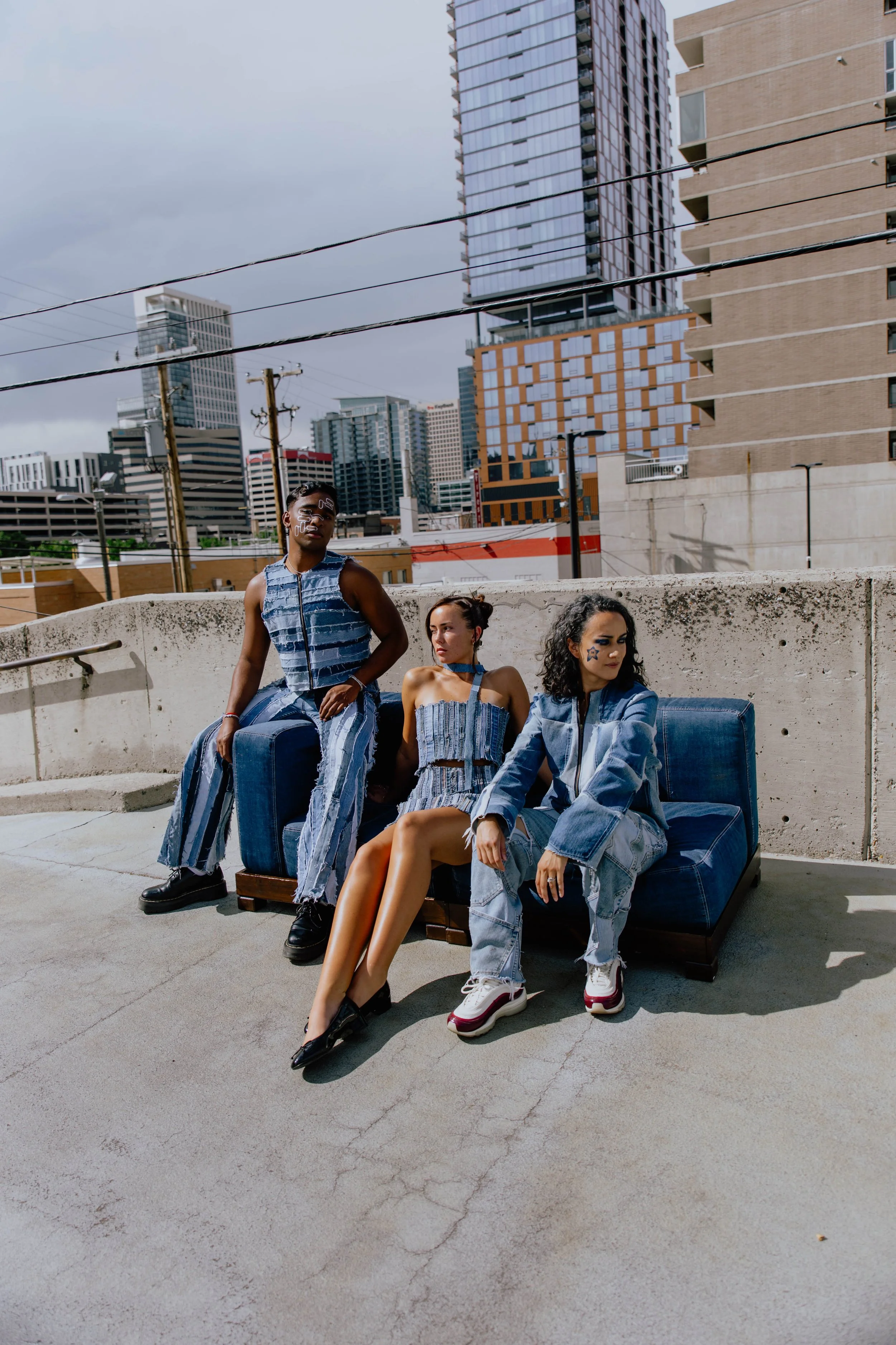 An eleven piece collection made entirely out of second hand jeans and other discarded denim. Made from 23 pounds of old denim, this collection saved approximately 25,000 gallons of water (that’s 1,600 showers)!