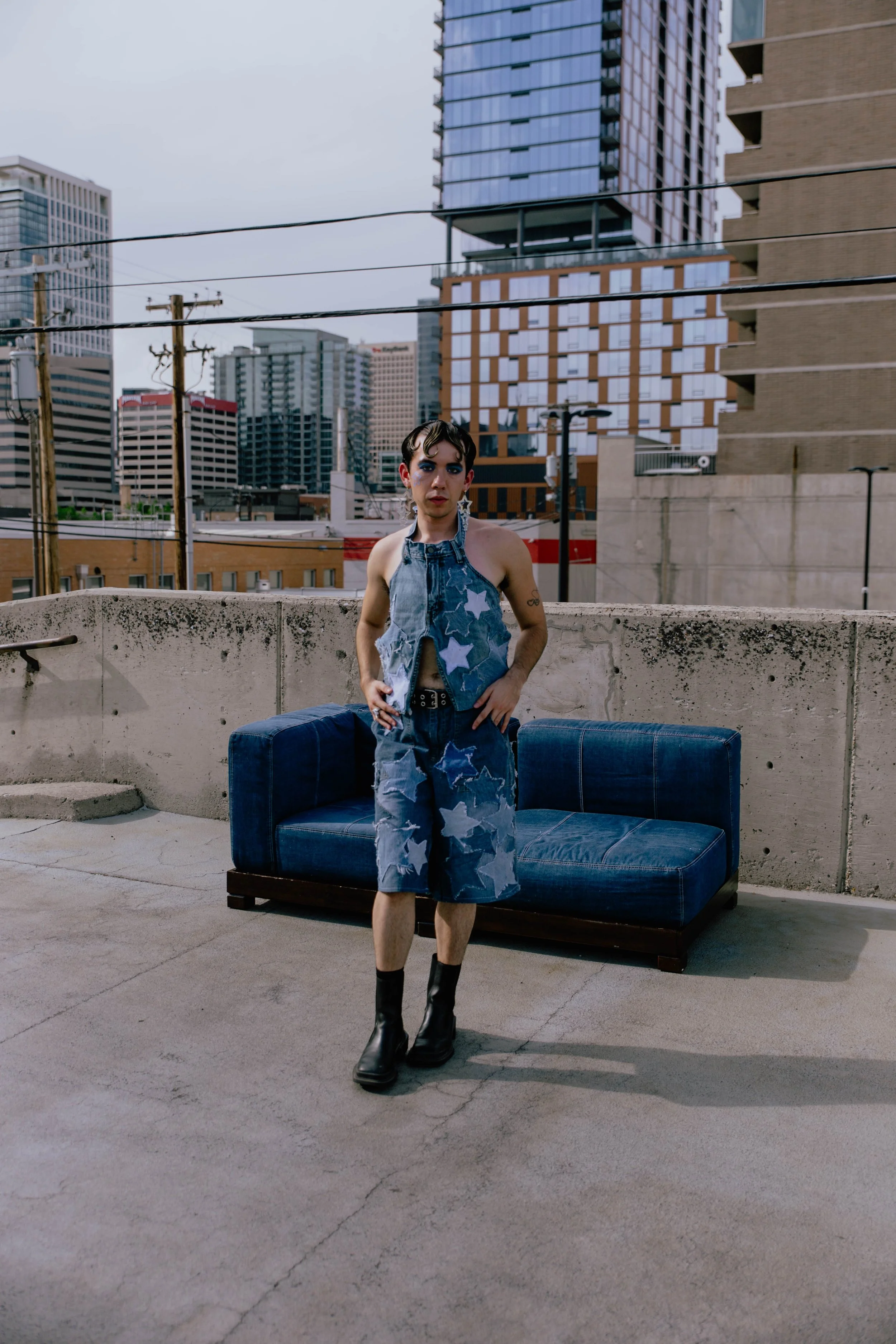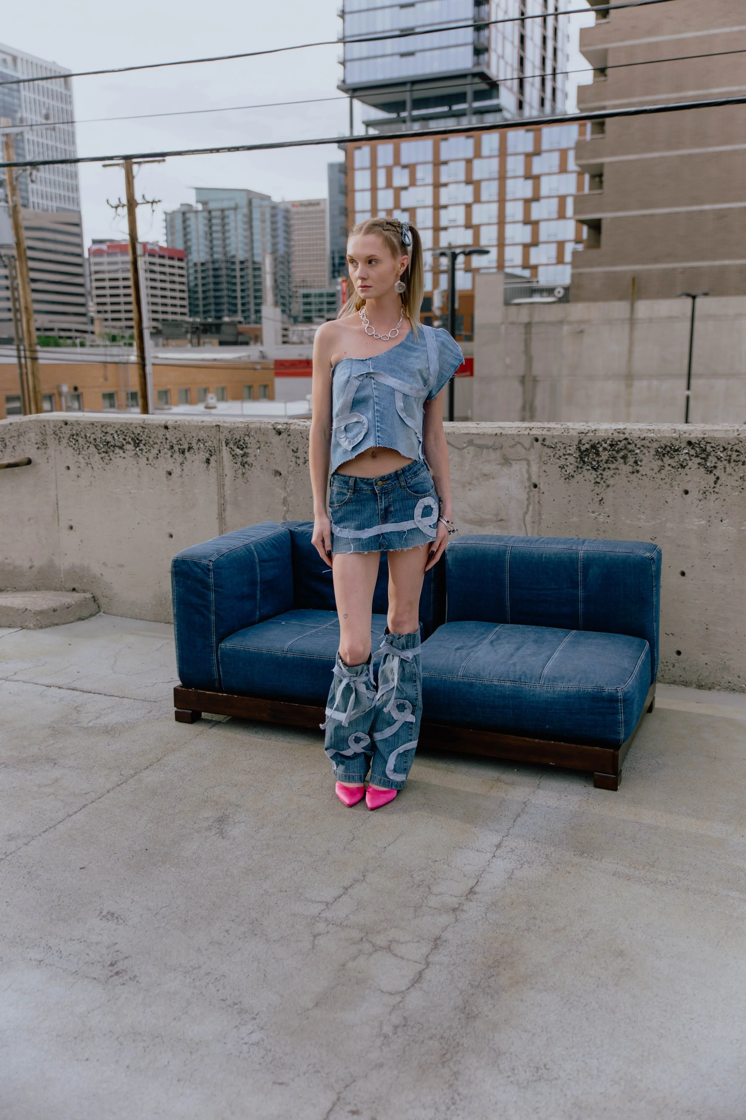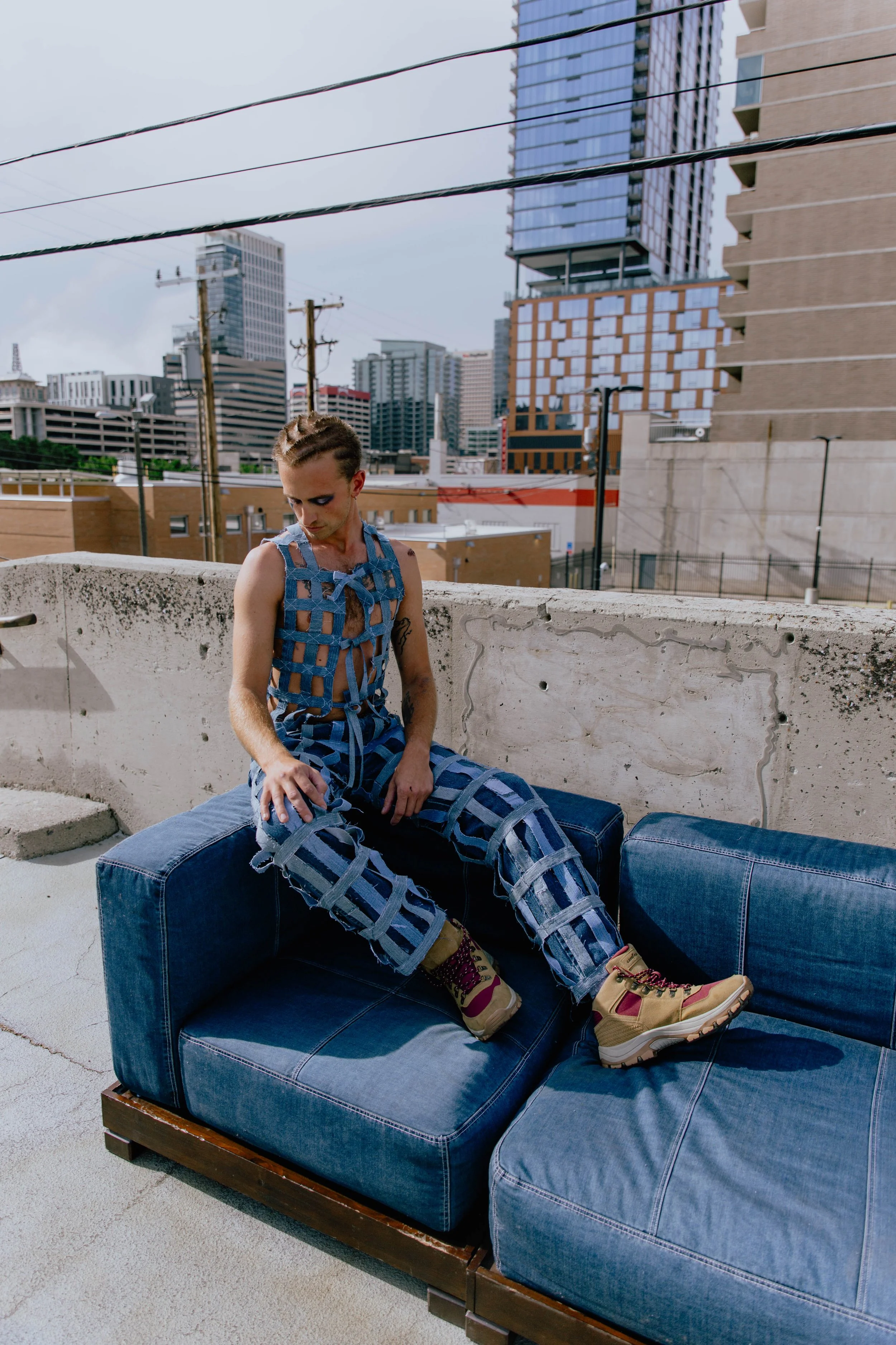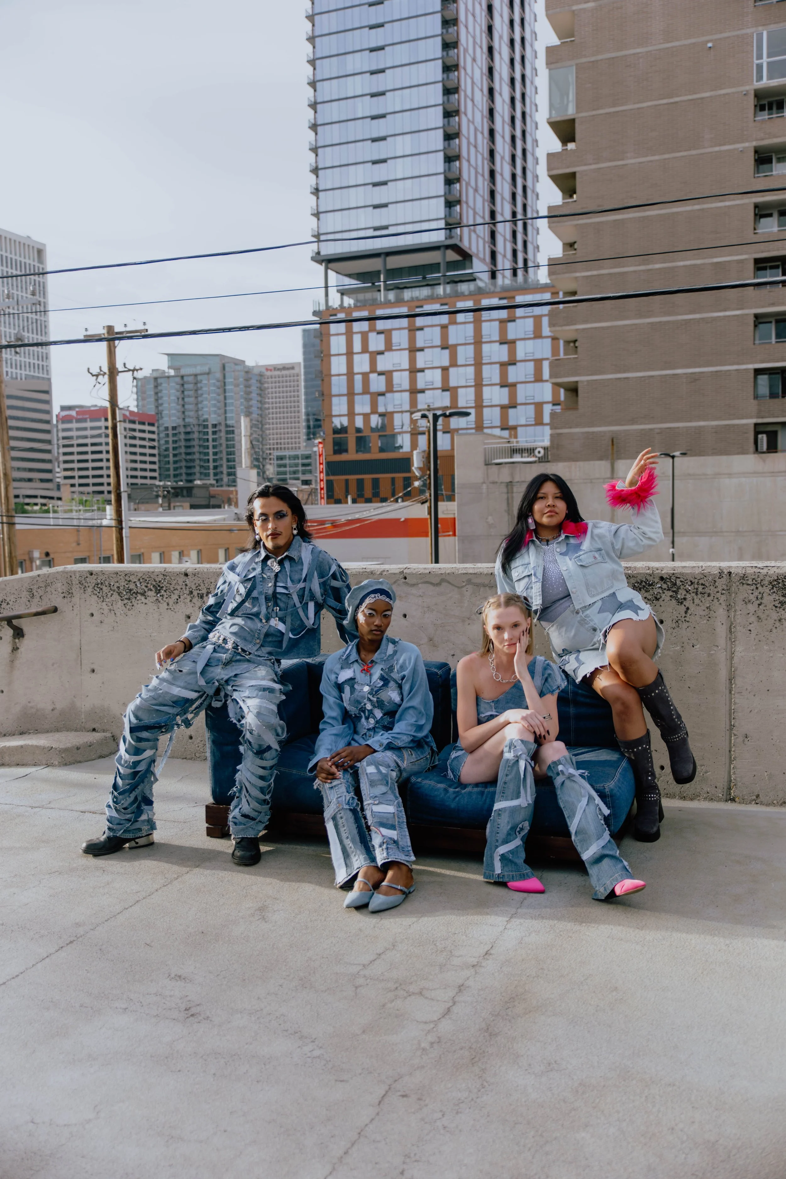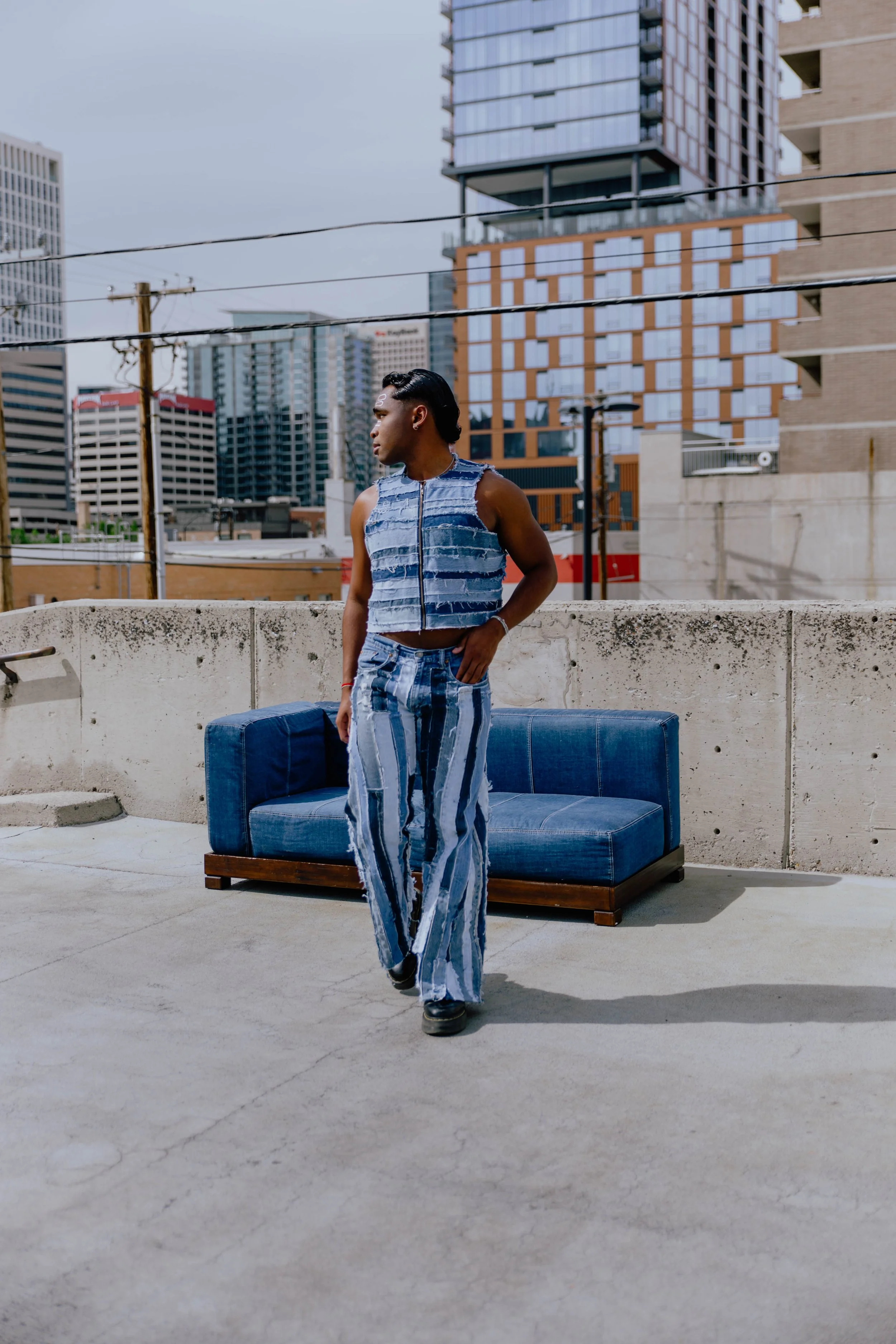 An eleven piece collection made entirely out of second hand jeans and other discarded denim. Made from 23 pounds of old denim, this collection saved approximately 25,000 gallons of water (that’s 1,600 showers)!